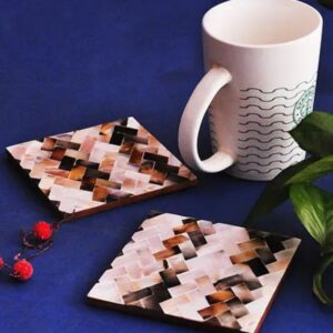 Lvory and Black Mother of Pearl and MDF Coasters (Set of 4)